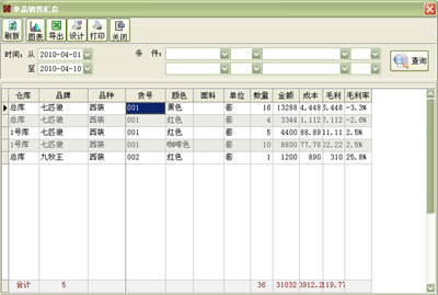 ·可以根据品牌、品种、单品来查询在某一时间段内的销售情况