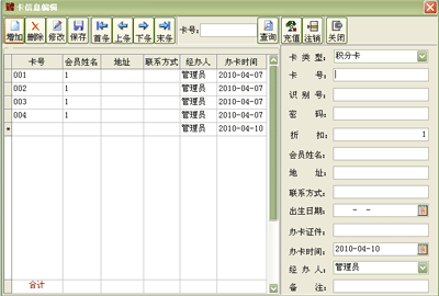 ·系统支持积分卡、储值卡、打折卡三中卡类型