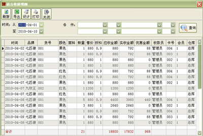 ·可以查看任一时间段的销售数据,也可根据收款员、促销员来查 |