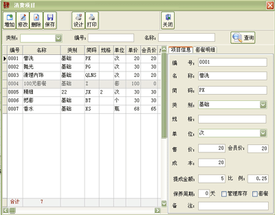 ·设置所有的消费项目,在使用软件之前应将消费项目设置好 |