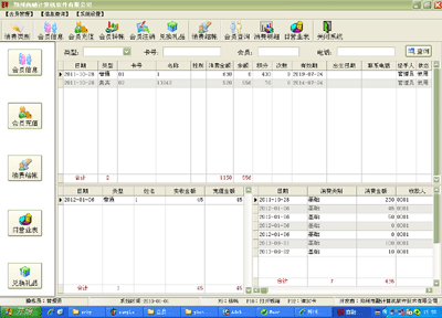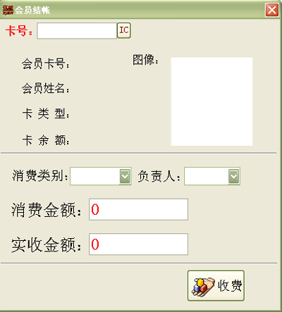 ·会员消费时先刷卡,如果系统设置储值要输入密码的话,刷卡时就得输入密码才能消费,然后选择消费类别,负责人为可选,如果是打折卡,输入完消费金额后按回车键系统会自动打折;系统结帐