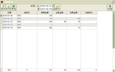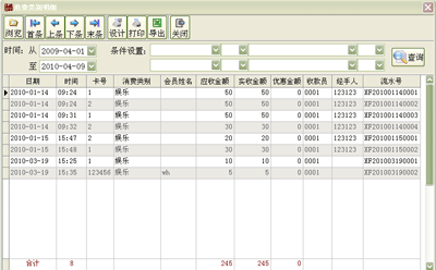 ·可以设置条件(时间、卡号等信息)查询会员的消费情况 |