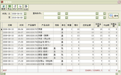 ·可以查看任一时间段的销售数据,也可根据收款员来查 |