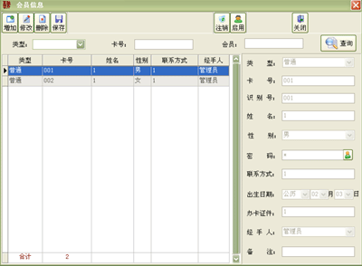 ·系统支持积分卡、打折卡2种卡类型