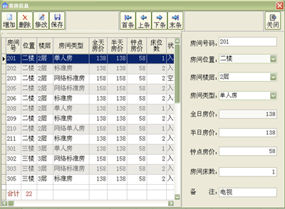 《商融客房管理系统》是一款专业的酒店宾馆客房管理软件,系统分为旅客管理、物品管理、会员管理等几大模块;同时系统还支持门锁、电话记费等功能模块接口,软件界面设计简洁, 美观,用户上手极易,是企业进行信息化管理的强大工具;适用于中、小型宾馆、酒店等使用;具体功能如下: