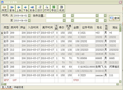 ·可以将所选时间段内所有入住的客人信息