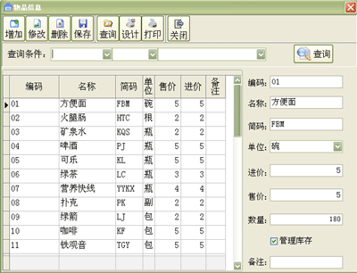·需要管理库存的物品需要在物品入库里入库,否则无法管理商品库存