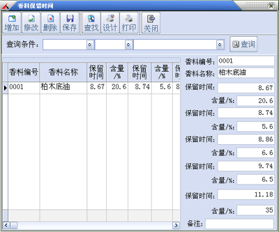 ·设置香料在各含量下的保留时间,供做实验时参考 |