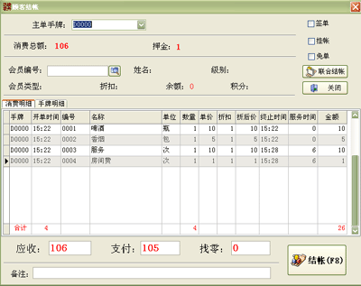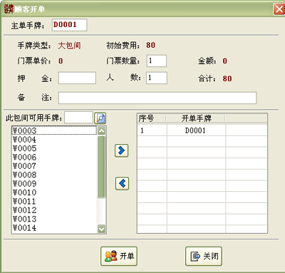·顾客开单和结帐都是根据手牌号来结算的