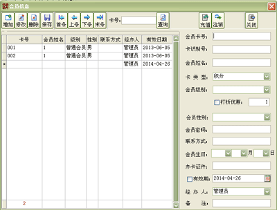 ·系统支持积分卡、储值卡、打折卡3种卡类型