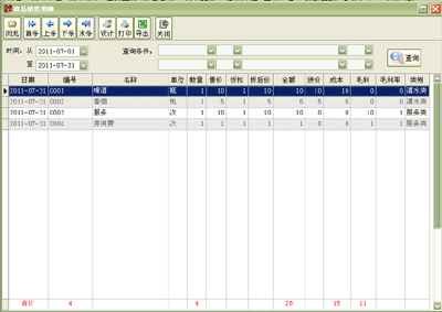 ·设置要查看的时间段,点统计就可以统计所 选时间段的营业情况