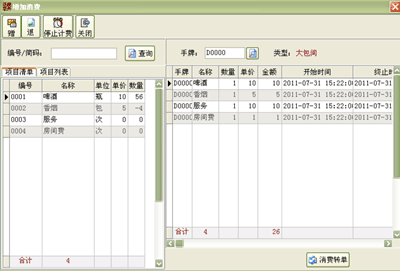 ·点击开台后系统就会出现增加消费明细的窗口;如果暂时不增加明细可以关掉就可以