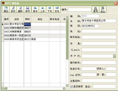 ·供应商建档时应把生产厂家的相关信息(名称、地址、联系电话、批准文号、GSP证书等信息)录入到系统中
