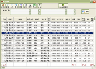 ·查看药品的库存明细,药品在库存中是以条码、批号、生产日期、有效期来管理的,同时可查看某一种商品的入库时间 |