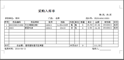 ·采购入库单的报表,此报表可以根据以前的工作习惯来进行重新设计,这只是一个样本 |