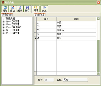 ·药品小类,将药品大类再进行细分,在销售报表中通过小类来进行统计,更加清楚明了