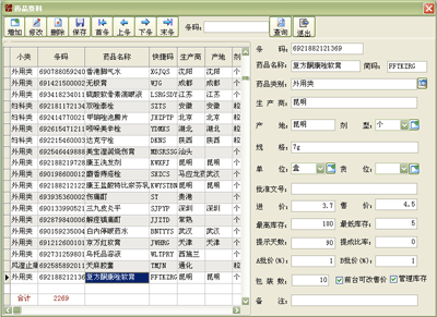·在药品资料中将药品的基本信息输入到系统中,录入药品资料之前应保证供应商资料、药品属性已输入完成,否则药品资料不能输入